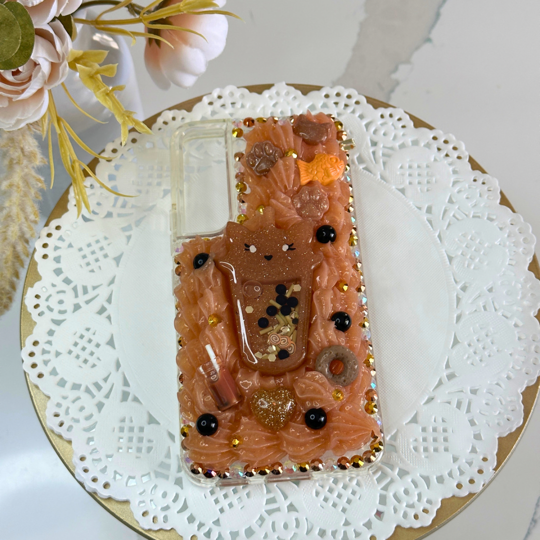 This listing is for the premade Boba Cat Samsung Galaxy S22 case in Thai, as pictured.