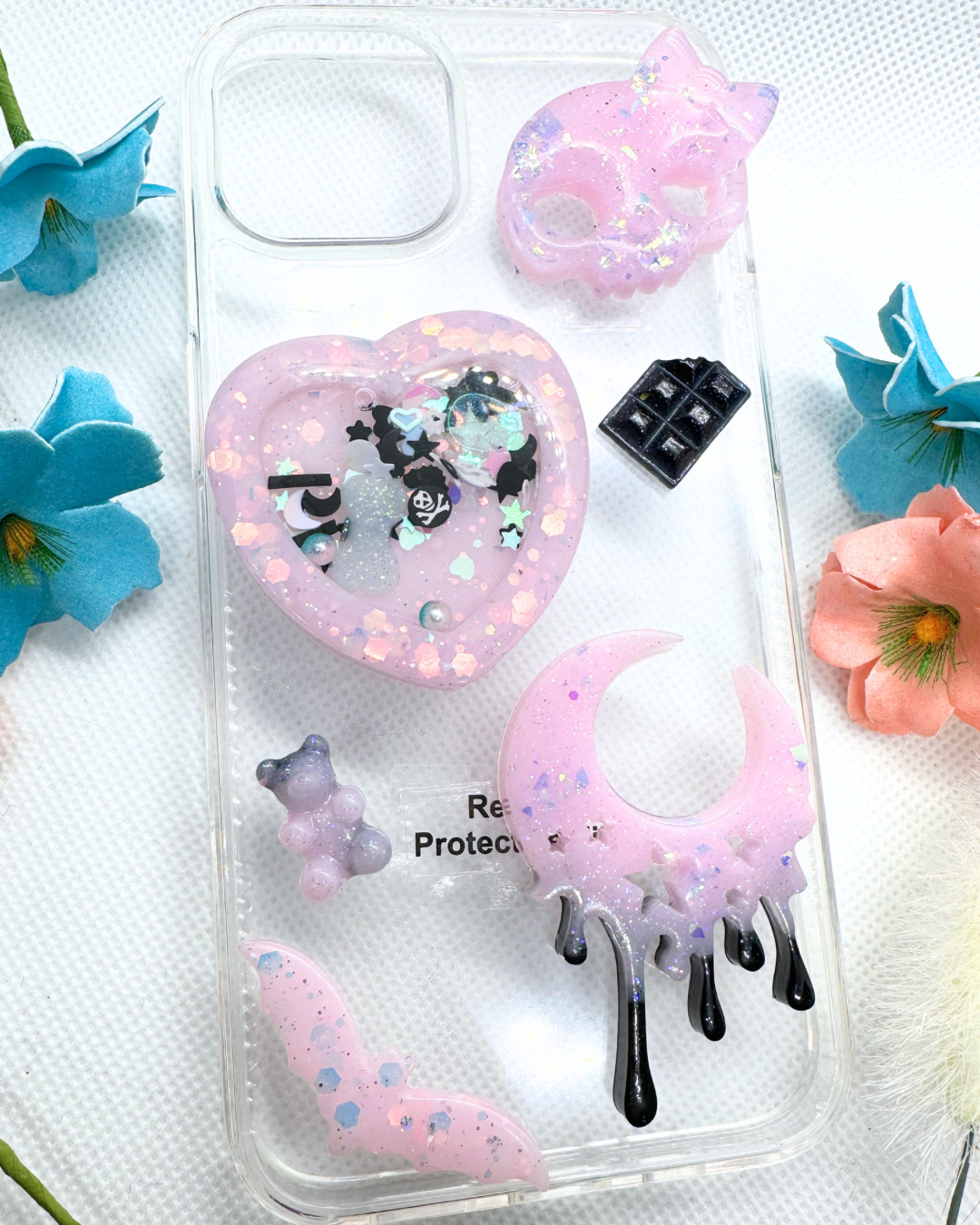 Pastel goth themed shaker case for any phone model. Choice of rhinestone or whipped finish, please specify colors in notes at check out.