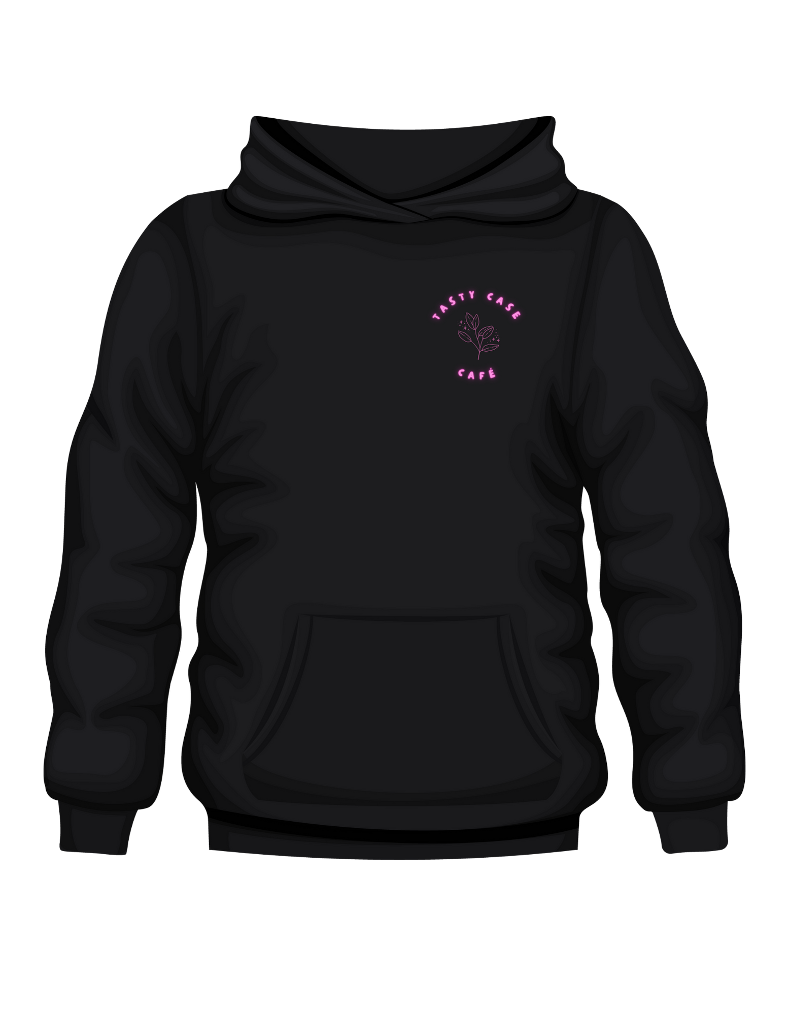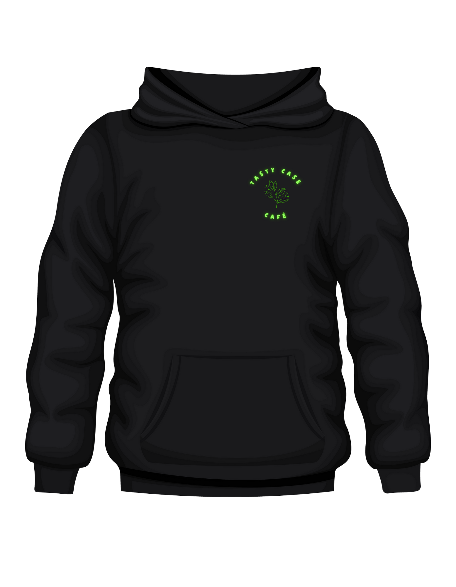 Original Tasty Case Cafe design in the Green Inked Mama plant shop series. Black hoodie with custom color options in heat press vinyl.